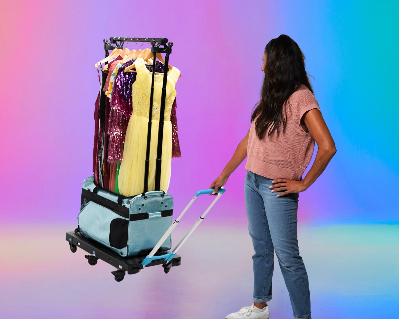 Transport any dance bag, pop-up costume rack, fold-flat design—made to survive parking lots, hotel hallways, and fast turnarounds.